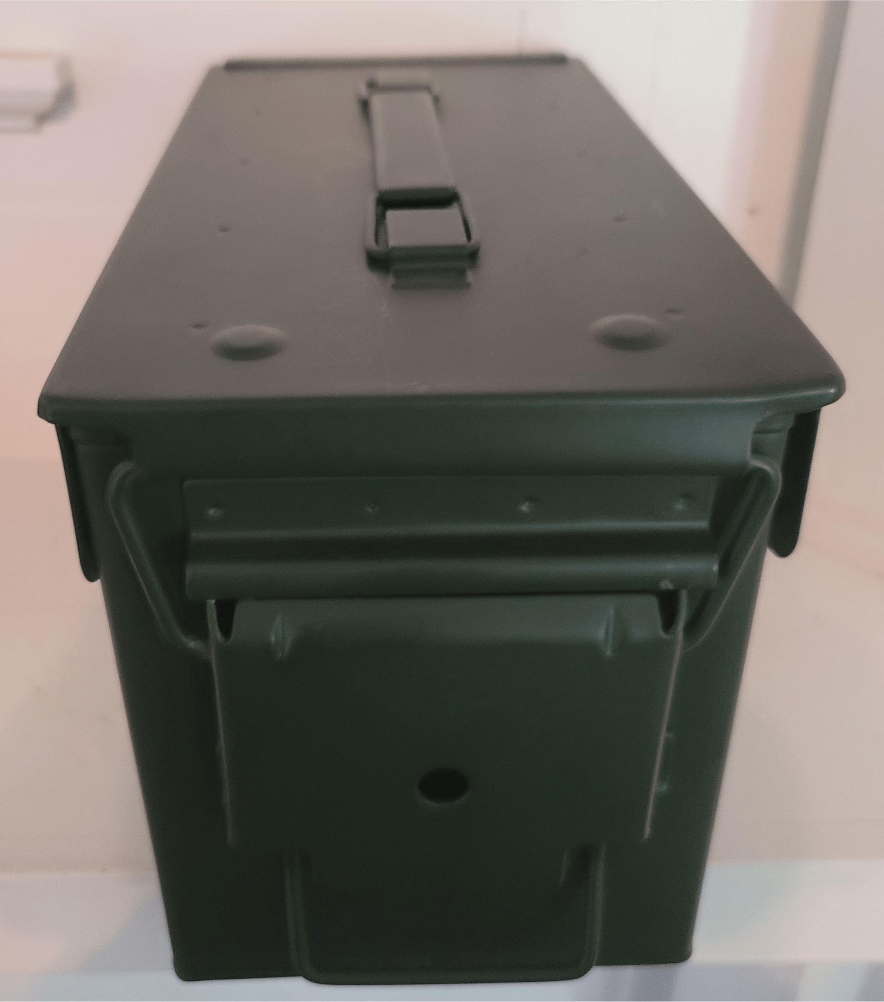 This authentic large metal military-grade ammunition box has been repurposed into a bold statement piece by Lab Allegiance. Featuring a hand-painted Dog design on the front, this box reflects our deep respect for American freedom, working dogs, and those who serve. Perfect for storing tools, keepsakes, or range gear, each box is painted by hand—no two are alike. Whether you're a veteran, hunter, dog lover, or patriot, this piece is a rugged and meaningful addition to your space.