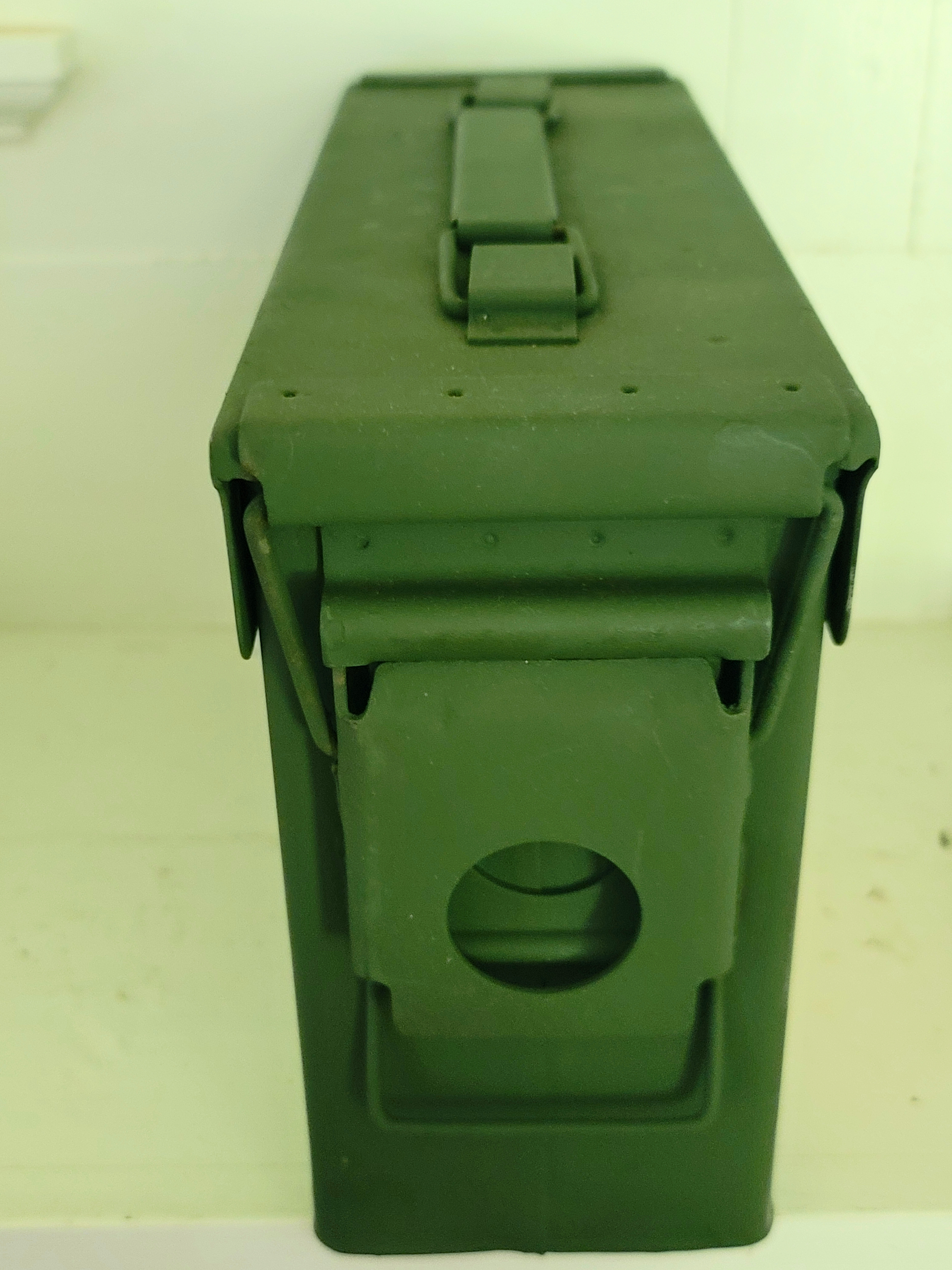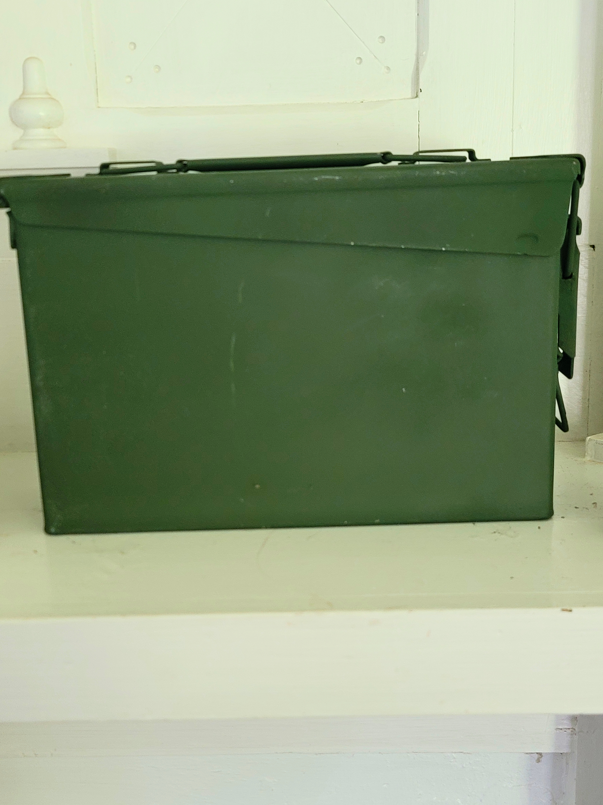 This authentic small metal military-grade ammunition box has been repurposed into a bold statement piece by Lab Allegiance. Featuring a hand-painted Patriot Dog design on the front, this box reflects our deep respect for American freedom, working dogs, and those who serve.